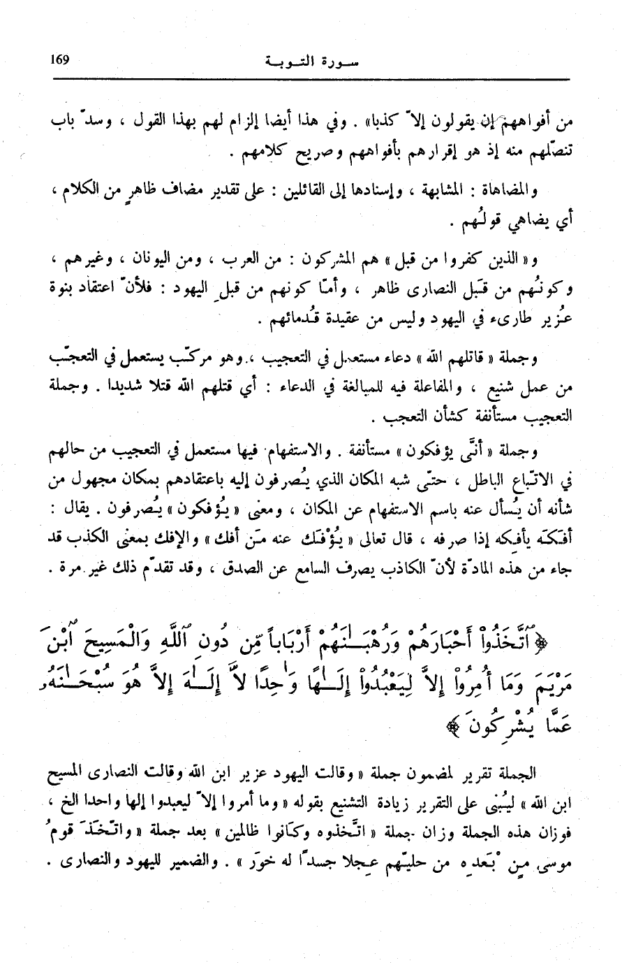 اتَّخَذُوا أَحْبارَهُمْ وَرُهْبانَهُمْ أَرْباباً مِنْ دُونِ اللَّهِ وَالْمَسِيحَ ابْنَ مَرْيَمَ وَما أُمِرُوا إِلاَّ لِيَعْبُدُوا إِلهاً واحِداً لَا إِلهَ إِلاَّ هُوَ سُبْحانَهُ عَمَّا يُشْرِكُونَ (31)