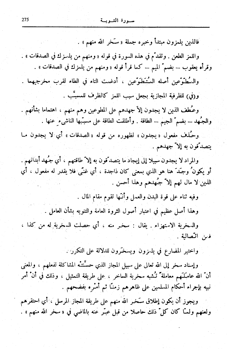 فَالَّذِينَ يَلْمِزُونَ مُبْتَدَأٌ وَخَبَرُهُ جُمْلَةُ سَخِرَ اللَّهُ مِنْهُمْ.