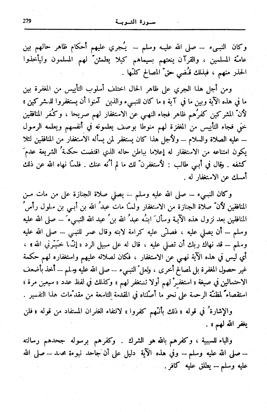 وَكَانَ النَّبِيءُ صَلَّى اللهُ عَلَيْهِ وَسَلَّمَ يُصَلِّي صَلَاةَ الْجِنَازَةِ عَلَى مَنْ مَاتَ مِنَ الْمُنَافِقِينَ لِأَنَّ صَلَاةَ الْجِنَازَةِ مِنَ الِاسْتِغْفَارِ