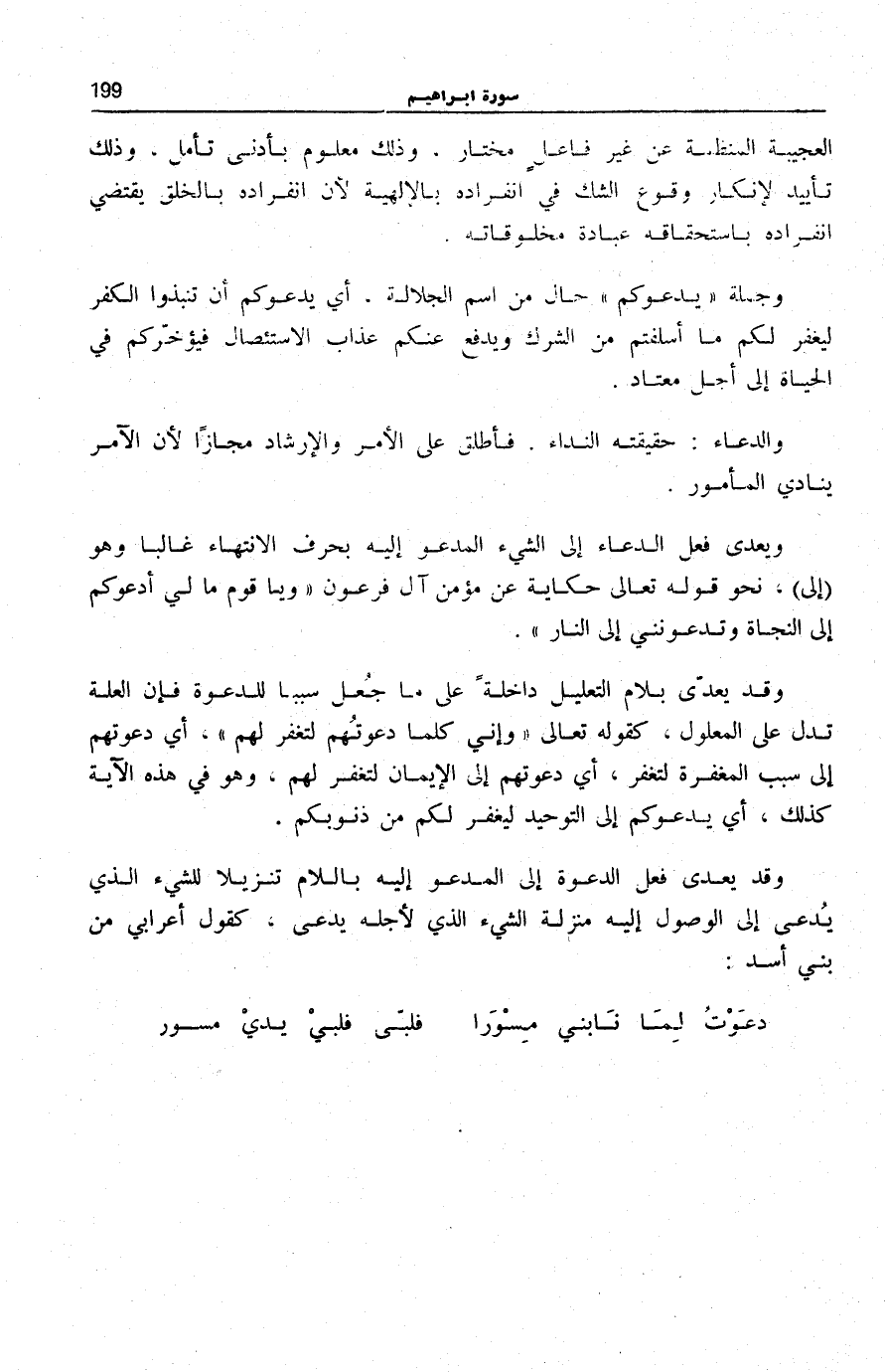 وَقَدْ يُعَدَّى فِعْلُ الدَّعْوَةِ إِلَى الْمَدْعُوِّ إِلَيْهِ بِاللَّامِ تَنْزِيلًا لِلشَّيْءِ الَّذِي يُدْعَى إِلَى الْوُصُولِ إِلَيْهِ مَنْزِلَةَ الشَّيْءِ الَّذِي لِأَجْلِهِ يُدْعَى، كَقَوْلِ أَعْرَابِيٍّ مِنْ بَنِي أَسَدٍ: