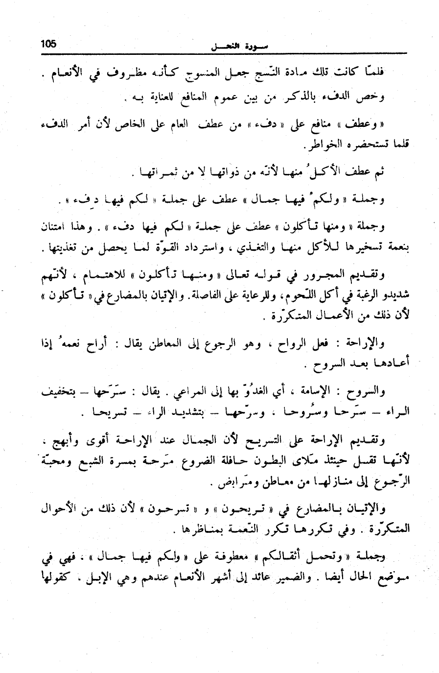 وَجُمْلَةُ وَلَكُمْ فِيها جَمالٌ عَطْفٌ عَلَى جُمْلَةِ لَكُمْ فِيها دِفْءٌ.