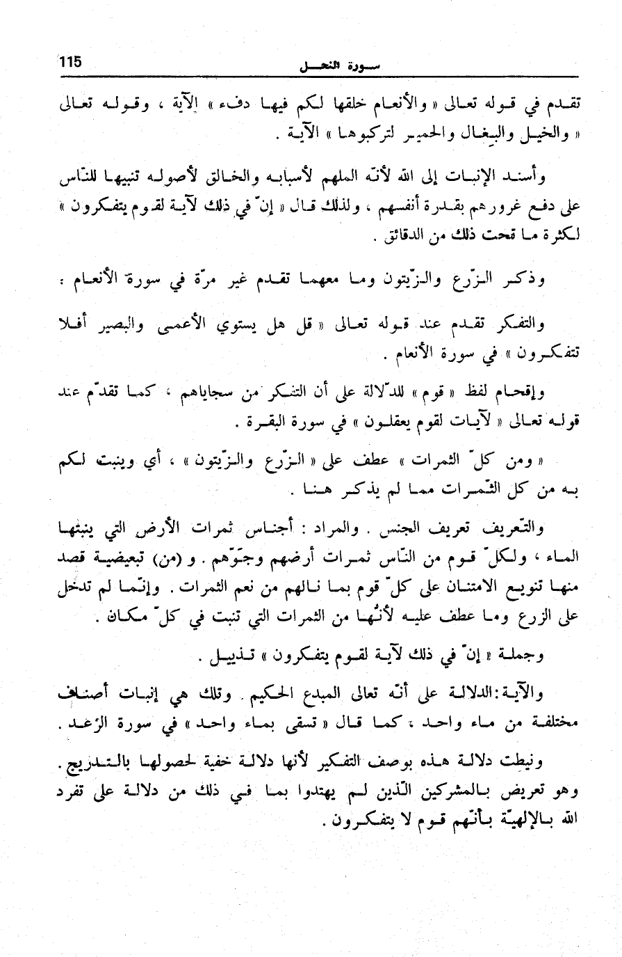 وَالْأَنْعامَ خَلَقَها لَكُمْ فِيها دِفْءٌ [سُورَة النَّحْل: 5] الْآيَةَ، وَقَوْلِهِ تَعَالَى: وَالْخَيْلَ وَالْبِغالَ وَالْحَمِيرَ لِتَرْكَبُوها [سُورَة النَّحْل: 8] الْآيَةَ.
