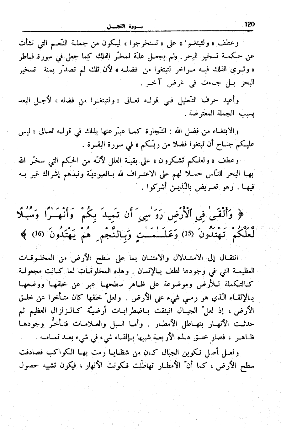وَأَلْقى فِي الْأَرْضِ رَواسِيَ أَنْ تَمِيدَ بِكُمْ وَأَنْهاراً وَسُبُلاً لَعَلَّكُمْ تَهْتَدُونَ (15) وَعَلاماتٍ وَبِالنَّجْمِ هُمْ يَهْتَدُونَ (16)