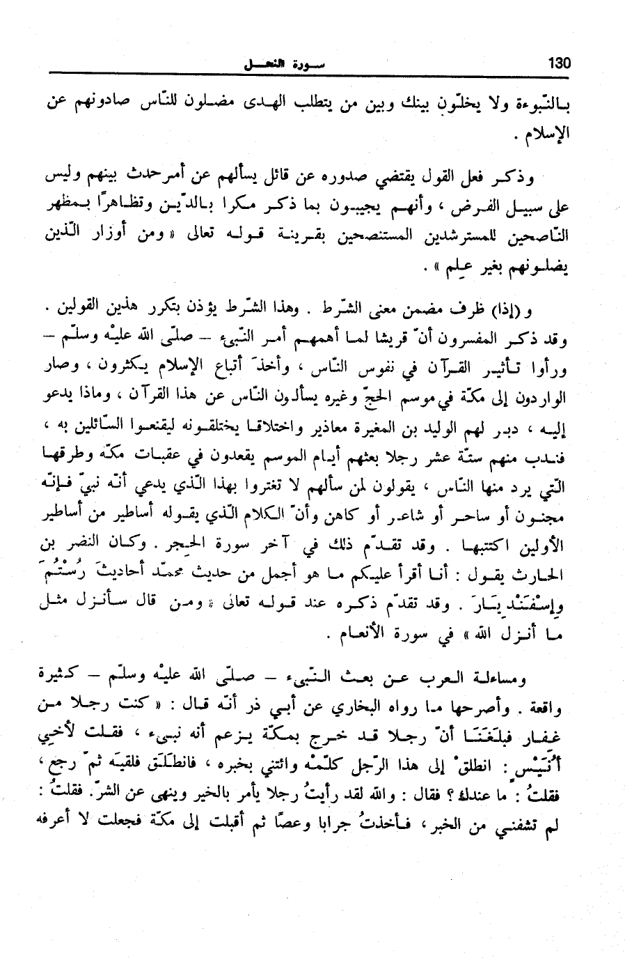 وَمُسَاءَلَةُ الْعَرَبِ عَنْ بَعْثِ النَّبِيءِ صَلَّى اللهُ عَلَيْهِ وَسَلَّمَ كَثِيرَةٌ وَاقِعَةٌ. وَأَصْرَحُهَا مَا رَوَاهُ الْبُخَارِيُّ عَنْ أَبِي ذَرٍّ أَنَّهُ قَالَ: «كُنْتُ رَجُلًا مِنْ غِفَارٍ فَبَلَغَنَا أَنَّ رَجُلًا قَدْ خَرَجَ بِمَكَّةَ يزْعم أَنه نبيء، فَقُلْتُ لِأَخِي أُنَيْسٍ: انْطَلِقْ إِلَى هَذَا الرَّجُلِ كَلِّمْهُ وَائْتِنِي بِخَبَرِهِ، فَانْطَلَقَ فَلَقِيَهُ ثُمَّ رَجَعَ، فَقُلْتُ: مَا عِنْدَكَ؟ فَقَالَ: وَاللَّهِ لَقَدْ رَأَيْتُ رَجُلًا يَأْمُرُ بِالْخَيْرِ وَيَنْهَى عَنِ الشَّرِّ. فَقُلْتُ: لَمْ تشفني من الْخَيْر، فَأَخَذْتُ جِرَابًا وَعَصًا ثُمَّ أَقْبَلْتُ إِلَى مَكَّةَ فَجَعَلْتُ لَا أَعْرِفُهُ
