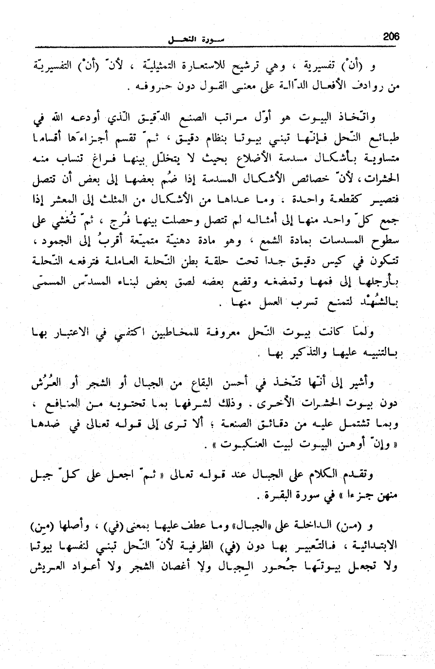 وَلَمَّا كَانَتْ بُيُوتُ النَّحْلِ مَعْرُوفَةٌ لِلْمُخَاطَبِينَ اكْتُفِيَ فِي الِاعْتِبَارِ بِهَا بِالتَّنْبِيهِ عَلَيْهَا وَالتَّذْكِيرِ بِهَا.