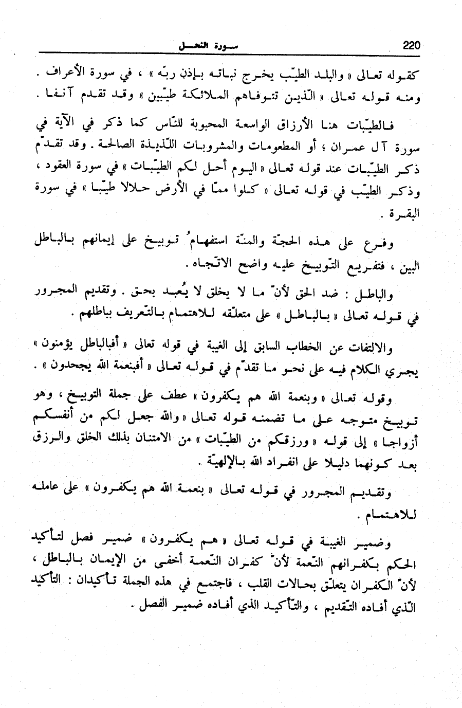 كَقَوْلِهِ تَعَالَى: وَالْبَلَدُ الطَّيِّبُ يَخْرُجُ نَباتُهُ بِإِذْنِ رَبِّهِ، فِي سُورَةِ الْأَعْرَافِ [58] . وَمِنْهُ قَوْلُهُ تَعَالَى: الَّذِينَ تَتَوَفَّاهُمُ الْمَلائِكَةُ طَيِّبِينَ [سُورَة النَّحْل: 32] وَقَدْ تَقَدَّمَ آنِفًا.