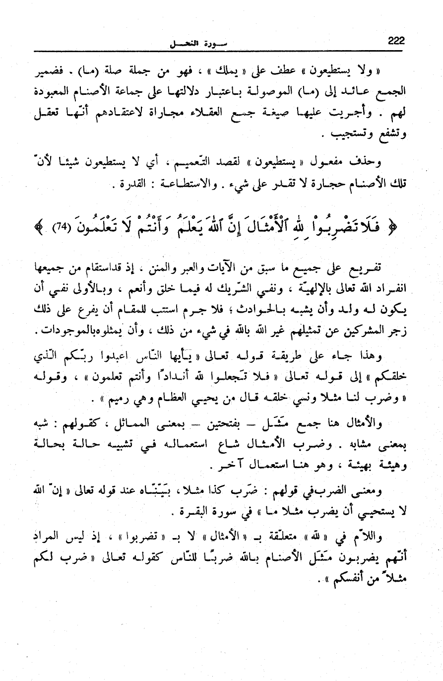 فَلا تَضْرِبُوا لِلَّهِ الْأَمْثالَ إِنَّ اللَّهَ يَعْلَمُ وَأَنْتُمْ لَا تَعْلَمُونَ (74)
