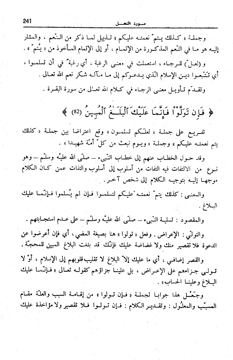 فَإِنْ تَوَلَّوْا فَإِنَّما عَلَيْكَ الْبَلاغُ الْمُبِينُ (82)