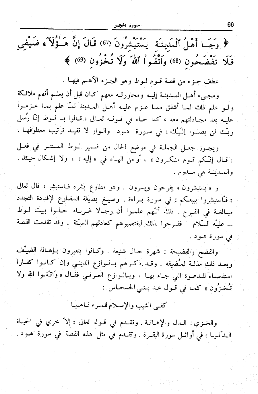 [سُورَة الْحجر (15) : الْآيَات 67 إِلَى 69]