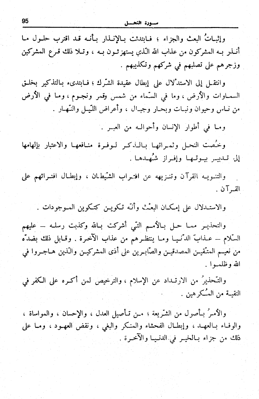 وَالتَّحْذِيرُ مِمَّا حَلَّ بِالْأُمَمِ الَّتِي أَشْرَكَتْ بِاللَّهِ وَكَذَّبَتْ رُسُلَهُ- عَلَيْهِمُ السَّلَامُ- عَذَابَ الدُّنْيَا وَمَا يَنْتَظِرُهُمْ مِنْ عَذَابِ الْآخِرَةِ. وَقَابَلَ ذَلِكَ بِضِدِّهِ مِنْ نَعِيمِ الْمُتَّقِينَ الْمُصَدِّقِينَ وَالصَّابِرِينَ عَلَى أَذَى الْمُشْرِكِينَ وَالَّذِينَ هَاجَرُوا فِي اللَّهِ وَظُلِمُوا.