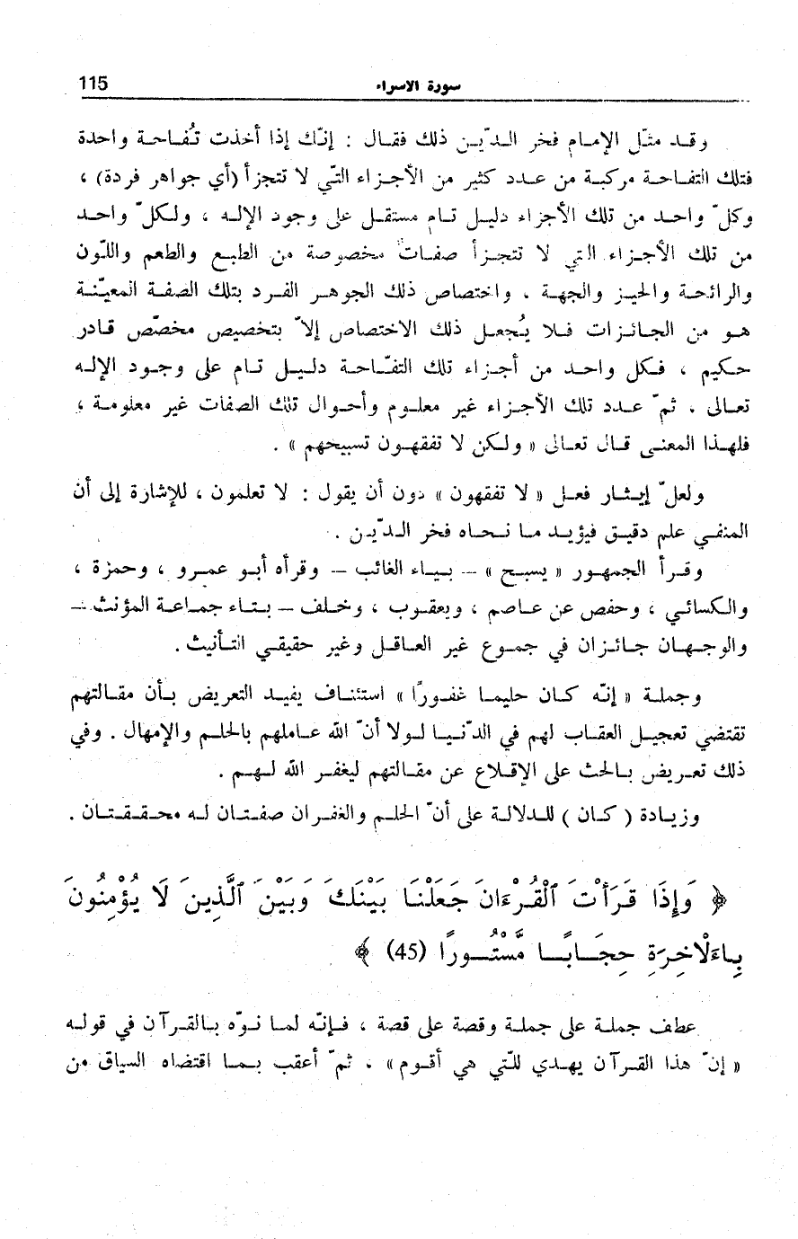 [سُورَة الْإِسْرَاء (17) : آيَة 45]