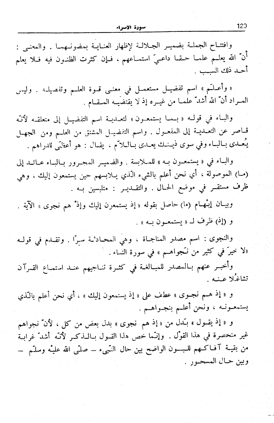 وإِذْ هُمْ نَجْوى عَطْفٌ عَلَى إِذْ يَسْتَمِعُونَ إِلَيْكَ، أَيْ نَحْنُ أَعْلَمُ بِالَّذِي يَسْتَمِعُونَهُ، وَنَحْنُ أَعْلَمُ بِنَجْوَاهُمْ.