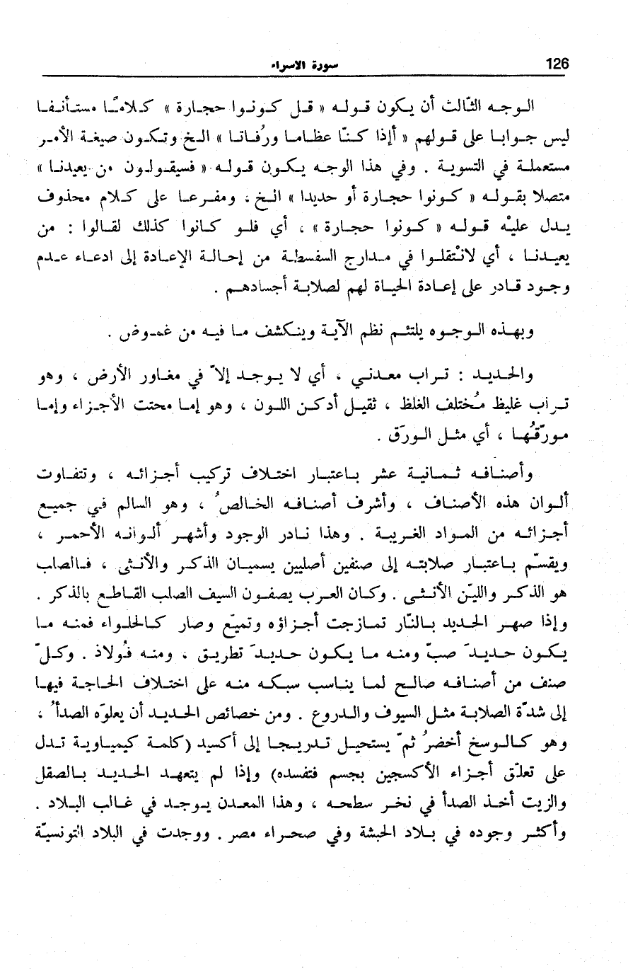 الْوَجْهُ الثَّالِثُ: أَنْ يَكُونَ قَوْلُهُ: قُلْ كُونُوا حِجارَةً كَلَامًا مُسْتَأْنِفًا لَيْسَ جَوَابًا عَلَى قَوْلِهِمْ: أَإِذا كُنَّا عِظاماً وَرُفاتاً [الْإِسْرَاء: 49] إِلَخْ وَتَكُونُ صِيغَةُ الْأَمْرِ مُسْتَعْمَلَةً فِي التَّسْوِيَةِ. وَفِي هَذَا الْوَجْهِ يَكُونُ قَوْلُهُ: فَسَيَقُولُونَ مَنْ يُعِيدُنا مُتَّصِلًا بِقَوْلِهِ: كُونُوا حِجارَةً أَوْ حَدِيداً إِلَخْ، وَمُفَرَّعًا عَلَى كَلَامٍ مَحْذُوفٍ يَدُلُّ عَلَيْهِ قَوْلُهُ: كُونُوا حِجارَةً،