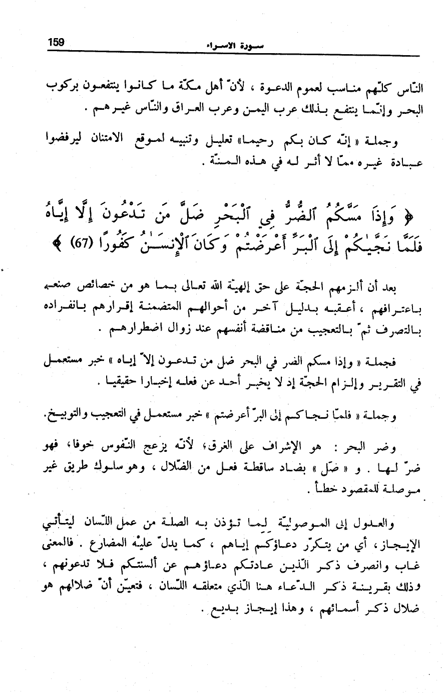 وَإِذا مَسَّكُمُ الضُّرُّ فِي الْبَحْرِ ضَلَّ مَنْ تَدْعُونَ إِلاَّ إِيَّاهُ فَلَمَّا نَجَّاكُمْ إِلَى الْبَرِّ أَعْرَضْتُمْ وَكانَ الْإِنْسانُ كَفُوراً (67)