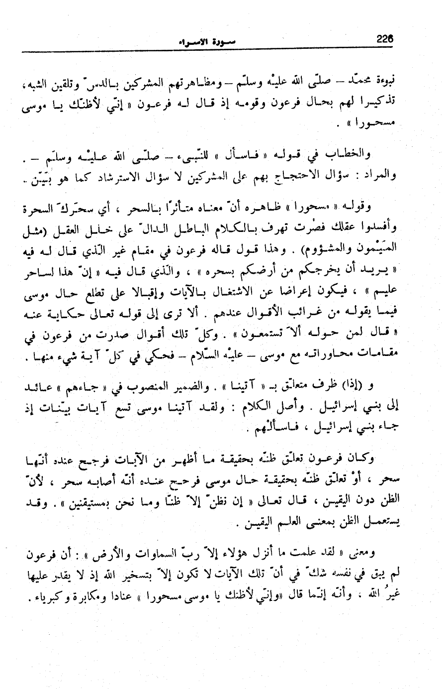 25] . وكل تِلْكَ أَقْوَال صَدَرَتْ مِنْ فِرْعَوْنَ فِي مَقَامَاتِ مُحَاوَرَاتِهِ مَعَ مُوسَى- عَلَيْهِ السَّلَامُ- فَحُكِيَ فِي كُلِّ آيَةٍ شَيْءٌ مِنْهَا.