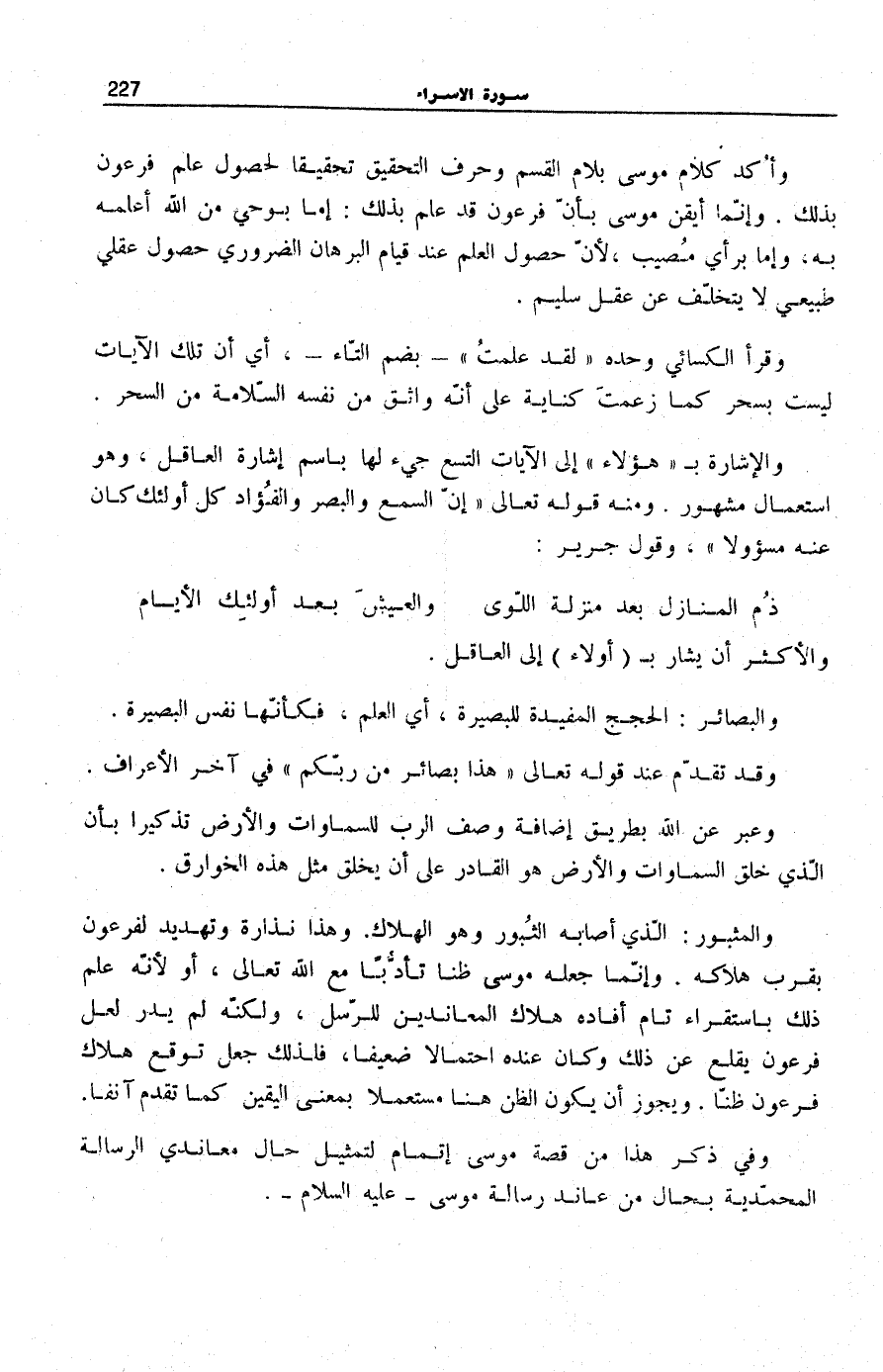وَفِي ذِكْرِ هَذَا مِنْ قِصَّةِ مُوسَى إِتْمَامٌ لِتَمْثِيلِ حَالِ مُعَانِدِي الرِّسَالَةِ الْمُحَمَّدِيَّةِ بِحَال من عَائِد رِسَالَةَ مُوسَى- عَلَيْهِ السَّلَامُ-.