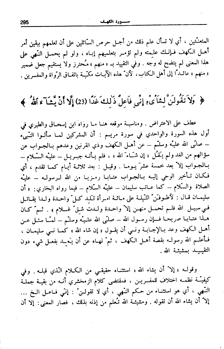 [سُورَة الْكَهْف (18) : الْآيَات 23 الى 24]