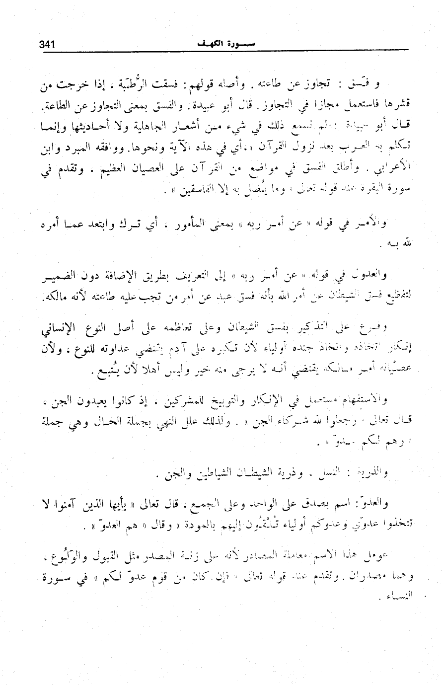 وَفَسَقَ: تَجَاوَزَ عَنْ طَاعَتِهِ. وَأَصْلُهُ قَوْلُهُمْ: فَسَقَتِ الرُّطَبَةُ، إِذَا خَرَجَتْ مِنْ قِشْرِهَا فَاسْتُعْمِلَ مَجَازًا فِي التَّجَاوُزِ. قَالَ أَبُو عُبَيْدَةَ. وَالْفِسْقُ بِمَعْنَى التَّجَاوُزِ عَنِ الطَّاعَةِ. قَالَ أَبُو عُبَيْدَةَ: «لَمْ نَسْمَعْ ذَلِكَ فِي شَيْءٍ مِنْ أَشْعَارِ الْجَاهِلِيَّةِ وَلَا أَحَادِيثِهَا وَإِنَّمَا تَكَلَّمَ بِهِ الْعَرَبُ بَعْدَ نُزُولِ الْقُرْآنِ» ، أَيْ فِي هَذِهِ الْآيَةِ وَنَحْوِهَا. وَوَافَقَهُ الْمُبَرِّدُ وَابْنُ الْأَعْرَابِيِّ. وَأُطْلِقَ الْفِسْقُ فِي مَوَاضِعَ مِنَ الْقُرْآنِ عَلَى الْعِصْيَانِ الْعَظِيمِ، وَتَقَدَّمَ فِي سُورَةِ الْبَقَرَةِ [26] عِنْدَ قَوْلِهِ تَعَالَى: