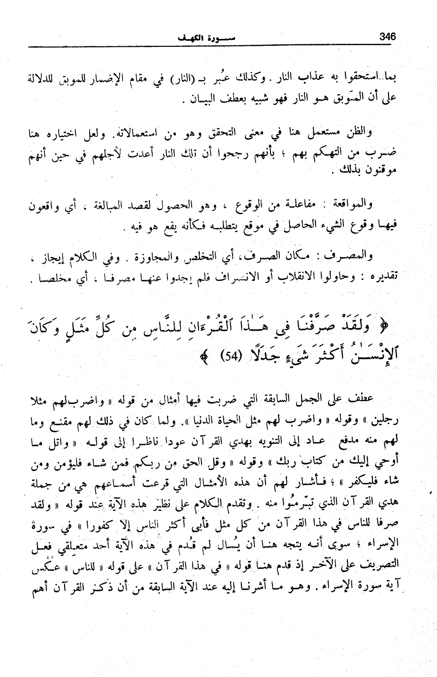 وَلَقَدْ صَرَّفْنا فِي هذَا الْقُرْآنِ لِلنَّاسِ مِنْ كُلِّ مَثَلٍ وَكانَ الْإِنْسانُ أَكْثَرَ شَيْءٍ جَدَلاً (54)