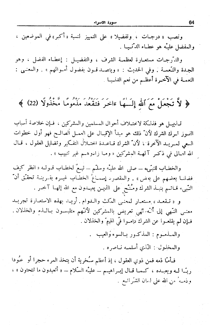 [سُورَة الْإِسْرَاء (17) : آيَة 22]
