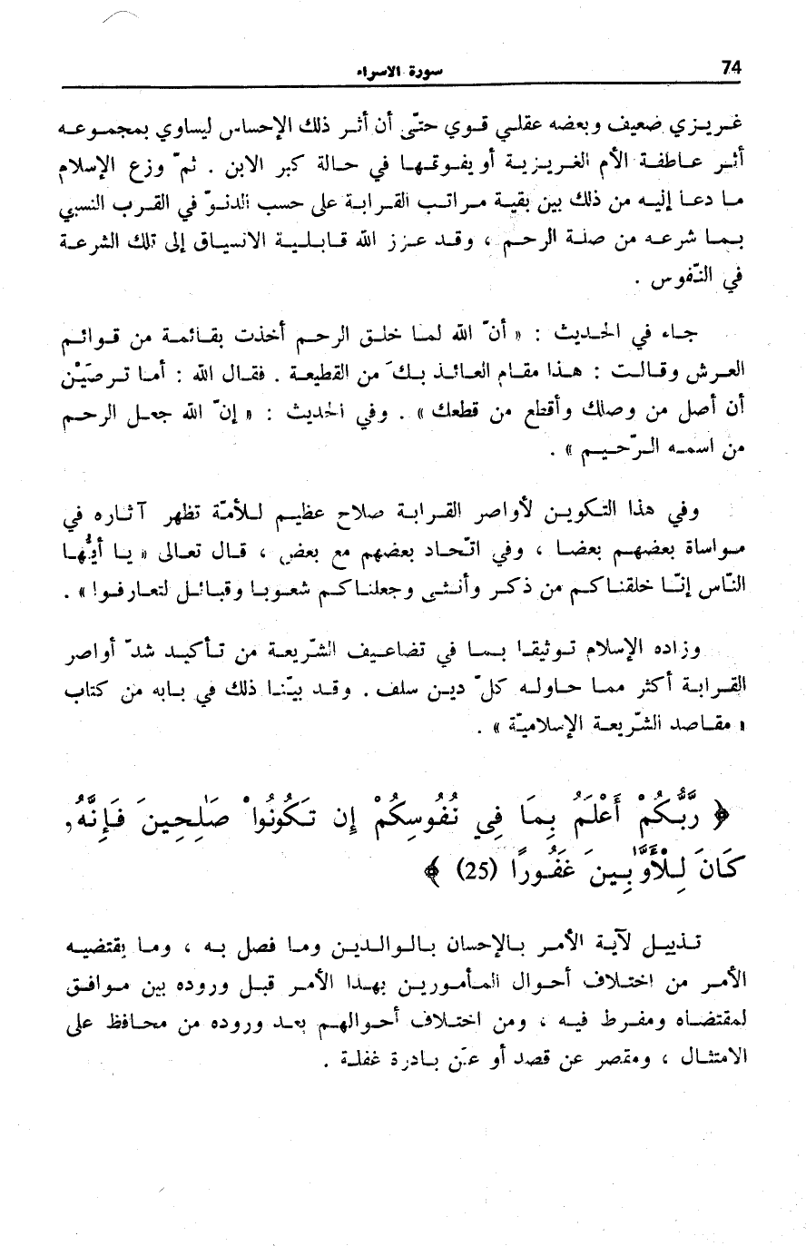 وَزَادَهُ الْإِسْلَامُ تَوْثِيقًا بِمَا فِي تَضَاعِيفِ الشَّرِيعَةِ مِنْ تَأْكِيدِ شَدِّ أَوَاصِرِ الْقَرَابَةِ أَكْثَرَ مِمَّا حَاوَلَهُ كُلُّ دِينٍ سَلَفَ. وَقَدْ بَيَّنَّا ذَلِكَ فِي بَابِهِ مِنْ كِتَابِ «مَقَاصِدِ الشَّرِيعَة الإسلامية» .