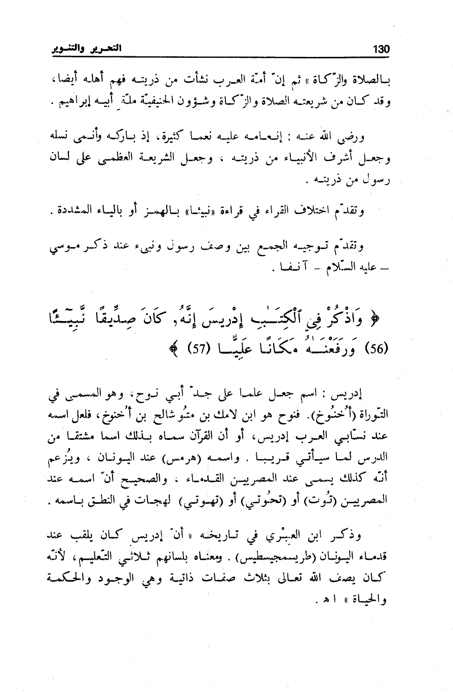 وَاذْكُرْ فِي الْكِتابِ إِدْرِيسَ إِنَّهُ كانَ صِدِّيقاً نَبِيًّا (56) وَرَفَعْناهُ مَكاناً عَلِيًّا (57)