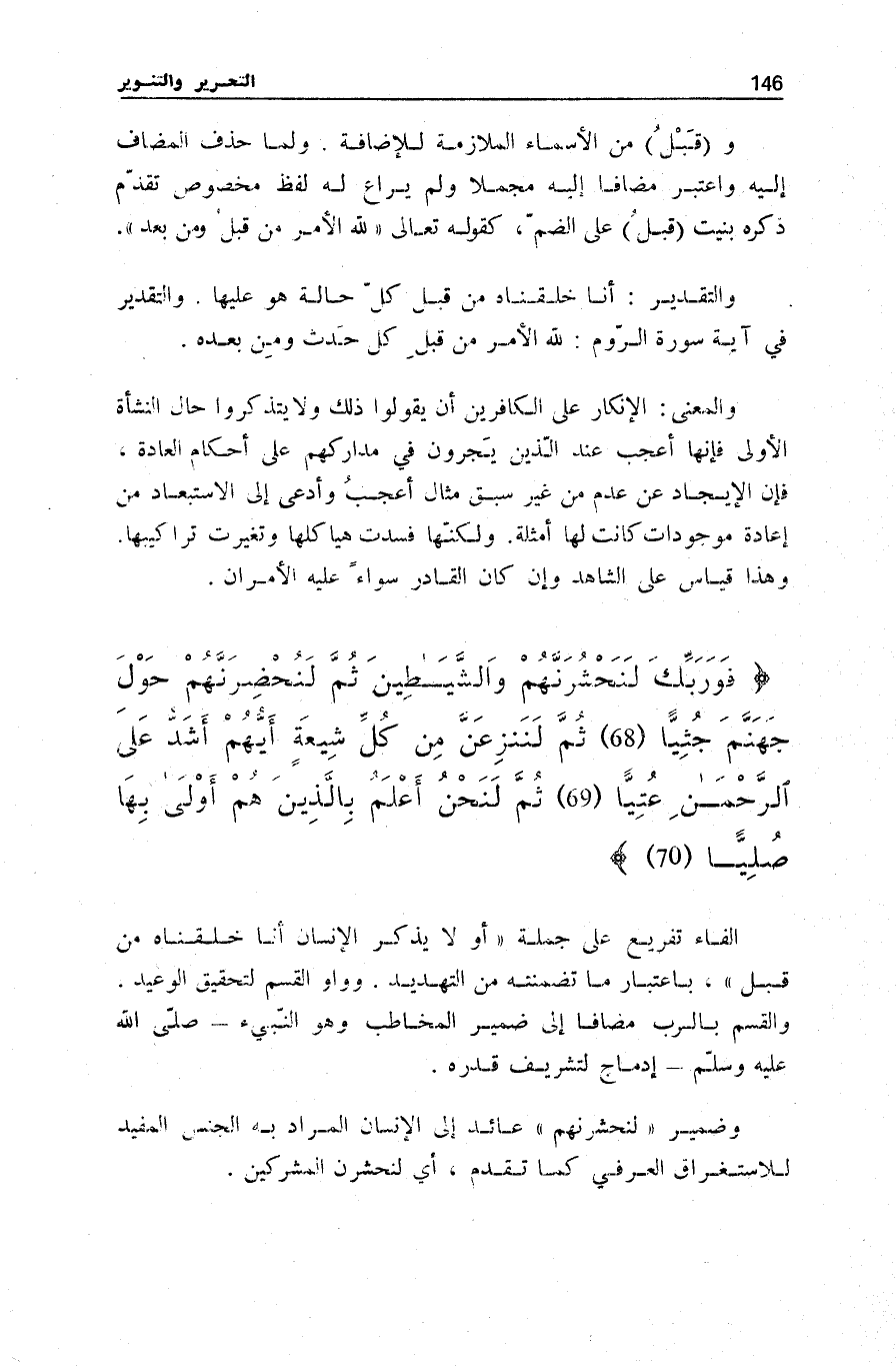 فَوَ رَبِّكَ لَنَحْشُرَنَّهُمْ وَالشَّياطِينَ ثُمَّ لَنُحْضِرَنَّهُمْ حَوْلَ جَهَنَّمَ جِثِيًّا (68) ثُمَّ لَنَنْزِعَنَّ مِنْ كُلِّ شِيعَةٍ أَيُّهُمْ أَشَدُّ عَلَى الرَّحْمنِ عِتِيًّا (69) ثُمَّ لَنَحْنُ أَعْلَمُ بِالَّذِينَ هُمْ أَوْلى بِها صِلِيًّا (70)