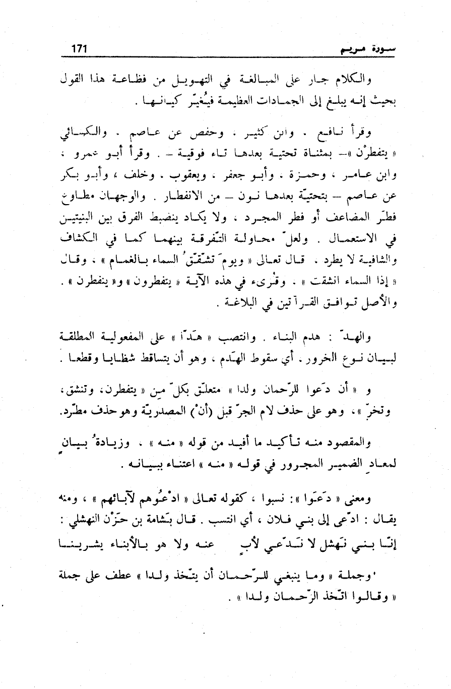 وأَنْ دَعَوْا لِلرَّحْمنِ وَلَداً مُتَعَلِّقٌ بِكُلٍّ مِنْ يَتَفَطَّرْنَ، وتَنْشَقُّ، وتَخِرُّ، وَهُوَ عَلَى حَذْفِ لَامِ الْجَرِّ قَبْلَ (أَنِ) الْمَصْدَرِيَّةِ وَهُوَ حَذْفٌ مُطَّرِدٌ.