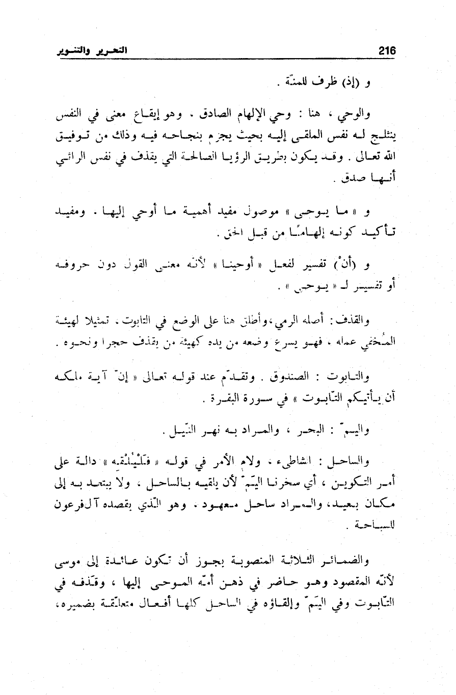 وَالضَّمَائِرُ الثَّلَاثَةُ الْمَنْصُوبَةُ يَجُوزُ أَنْ تَكُونَ عَائِدَةً إِلَى مُوسَى لِأَنَّهُ الْمَقْصُودُ وَهُوَ حَاضِرٌ فِي ذِهْنِ أُمِّهِ الْمُوحَى إِلَيْهَا، وَقَذْفُهُ فِي التَّابُوتِ وَفِي الْيَمِّ وَإِلْقَاؤُهُ فِي السَّاحِلِ كُلُّهَا أَفْعَالٌ مُتَعَلِّقَةٌ بِضَمِيرِهِ،