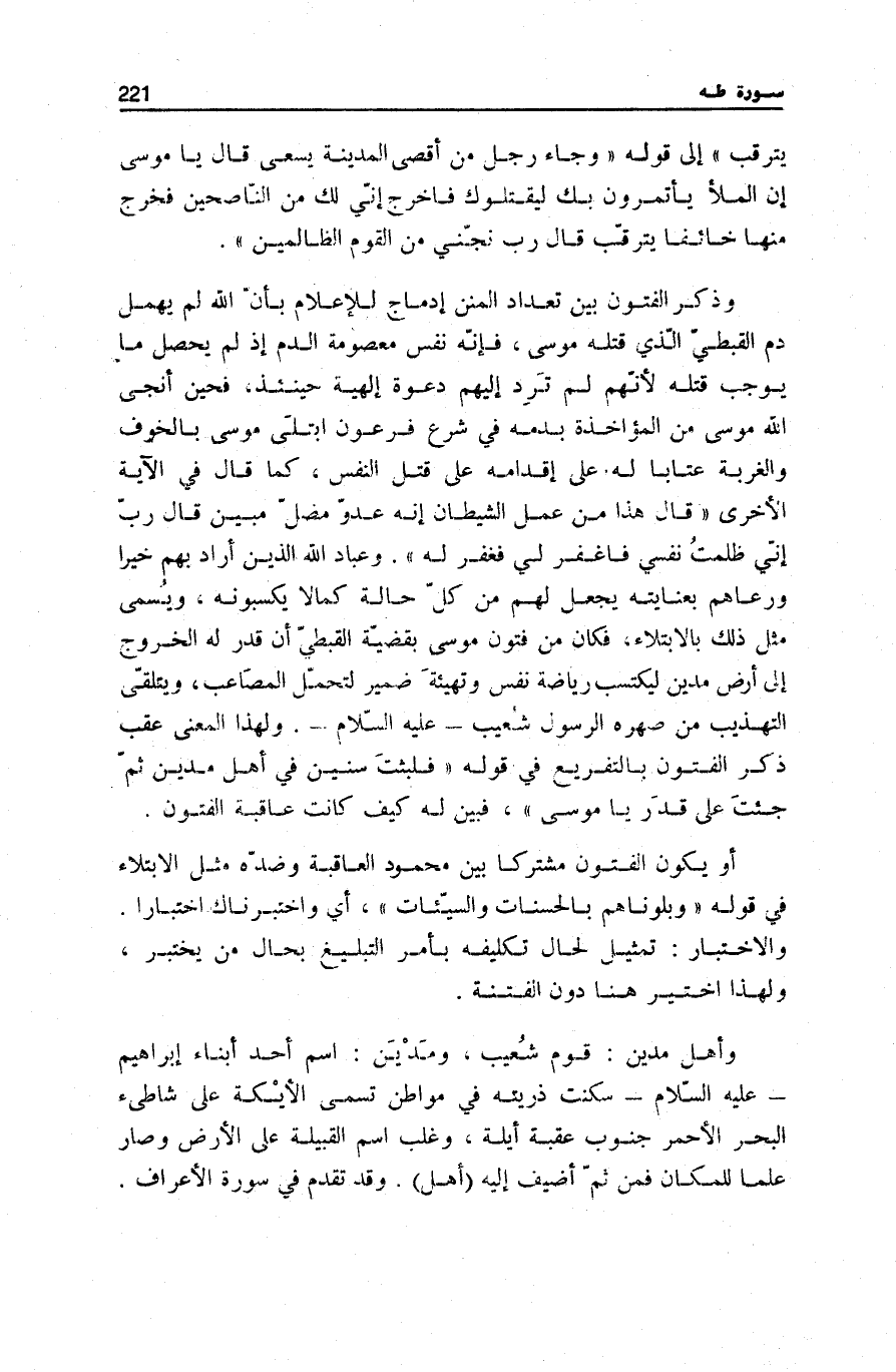 إِلَى قَوْلِهِ: وَجاءَ رَجُلٌ مِنْ أَقْصَى الْمَدِينَةِ يَسْعى قالَ يَا مُوسى إِنَّ الْمَلَأَ يَأْتَمِرُونَ بِكَ لِيَقْتُلُوكَ فَاخْرُجْ إِنِّي لَكَ مِنَ النَّاصِحِينَ فَخَرَجَ مِنْها خائِفاً يَتَرَقَّبُ قالَ رَبِّ نَجِّنِي مِنَ الْقَوْمِ الظَّالِمِينَ [الْقَصَص: 18- 21] .