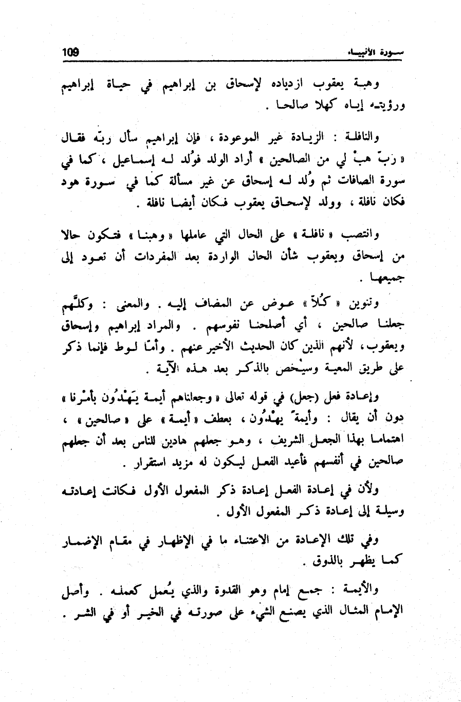 وَانْتَصَبَ نافِلَةً عَلَى الْحَالِ الَّتِي عَامِلُهَا وَهَبْنا فَتَكُونُ حَالًا مِنْ إِسْحَاقَ وَيَعْقُوبَ شَأْنُ الْحَالِ الْوَارِدَةِ بَعْدَ الْمُفْرَدَاتِ أَنْ تَعُودَ إِلَى جَمِيعِهَا.