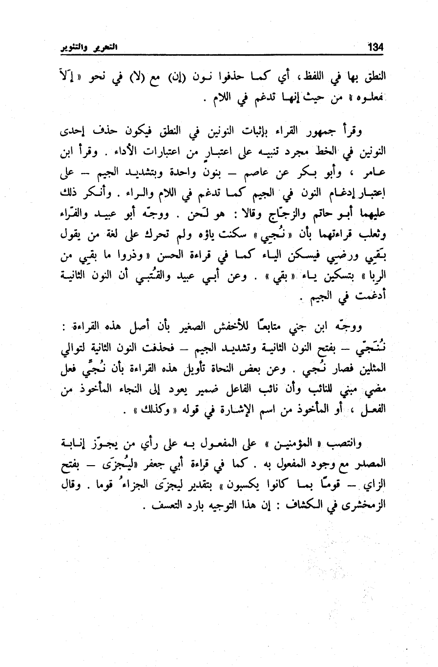 وَأنكر ذَلِك عَلَيْهِمَا أَبُو حَاتِمٍ وَالزَّجَّاجُ وَقَالَا: هُوَ لَحْنٌ. وَوَجَّهَ أَبُو عُبَيْدٍ وَالْفراء وثعلب قراءتهما بِأَن نُنْجِي سُكِّنَتْ يَاؤُهُ وَلَمْ تُحَرَّكْ عَلَى لُغَةِ مَنْ يَقُولُ بَقِي وَرَضِي فَيُسَكِّنُ الْيَاءَ كَمَا فِي قِرَاءَةِ الْحَسَنِ وَذَرُوا مَا بَقِيَ مِنَ الرِّبا [الْبَقَرَة: 278] بِتَسْكِينِ يَاءِ بَقِيَ. وَعَنْ أَبِي عُبَيْدٍ وَالْقُتَبِيِّ أَنَّ النُّونَ الثَّانِيَةَ أُدْغِمَتْ فِي الْجِيمِ.