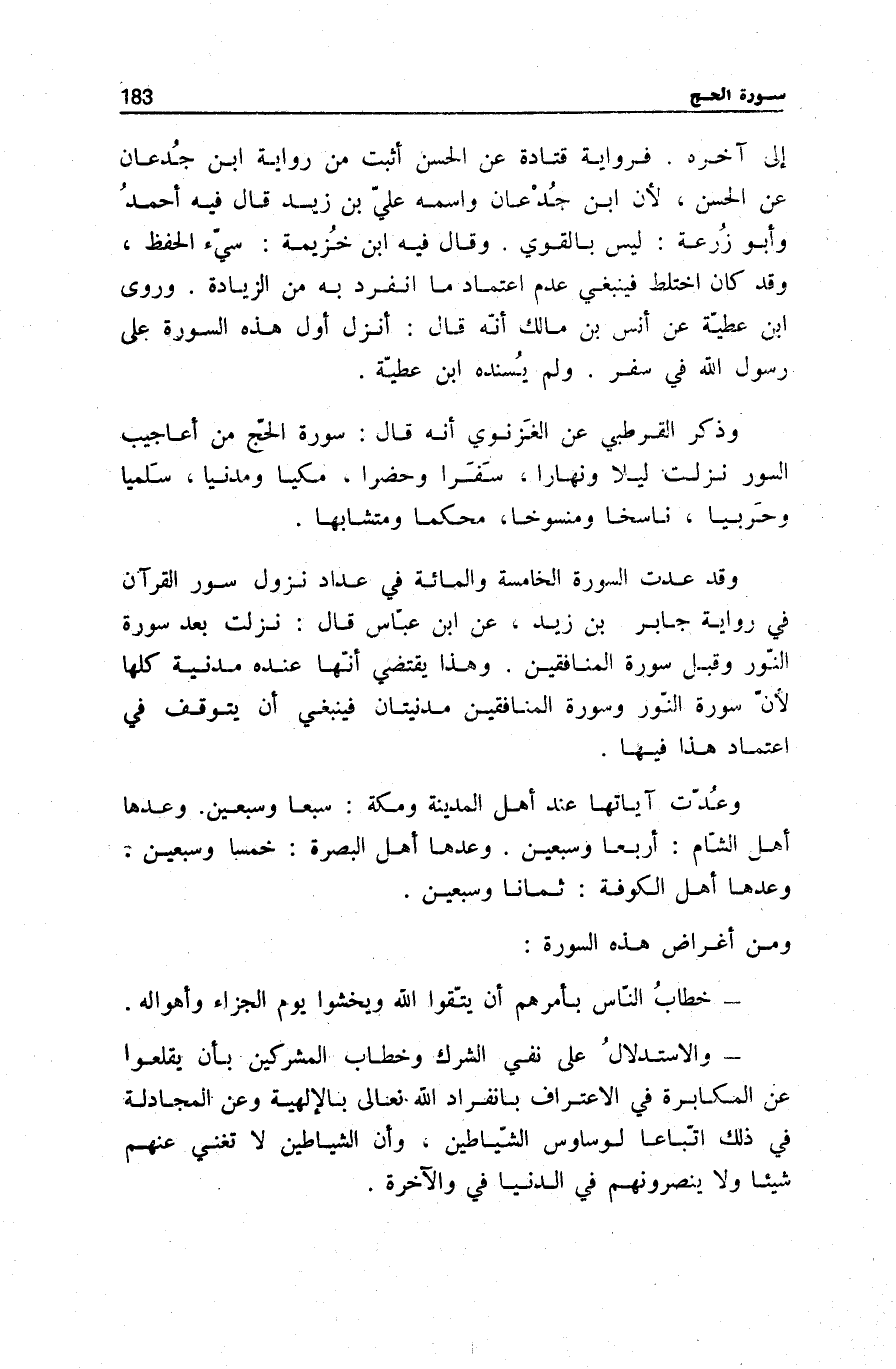 وَذَكَرَ الْقُرْطُبِيُّ عَنِ الْغَزْنَوِيِّ أَنَّهُ قَالَ: سُورَةُ الْحَجِّ مِنْ أَعَاجِيبِ السُّوَرِ نَزَلَتْ لَيْلًا