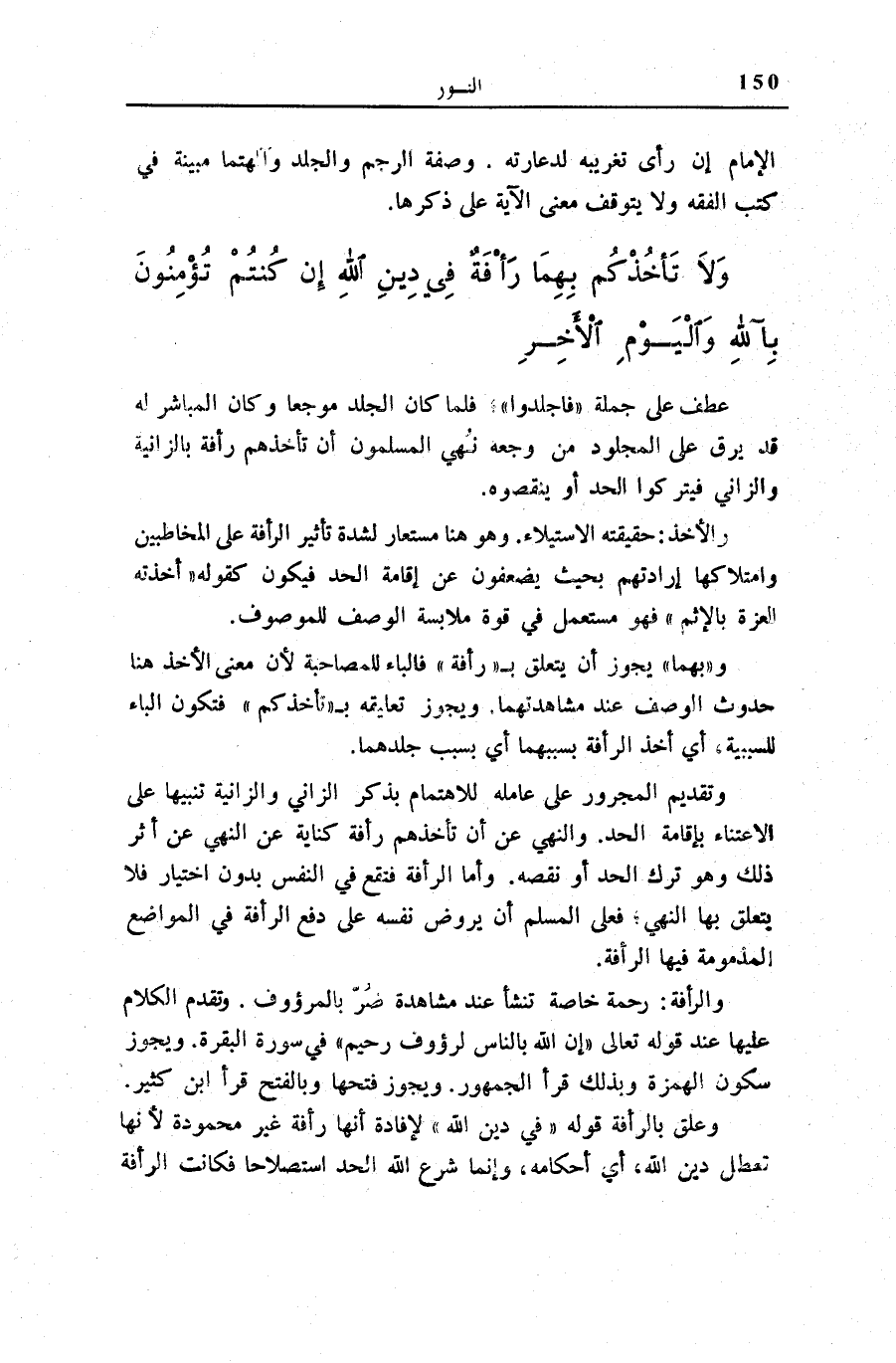 وَلا تَأْخُذْكُمْ بِهِما رَأْفَةٌ فِي دِينِ اللَّهِ إِنْ كُنْتُمْ تُؤْمِنُونَ بِاللَّهِ وَالْيَوْمِ الْآخِرِ.