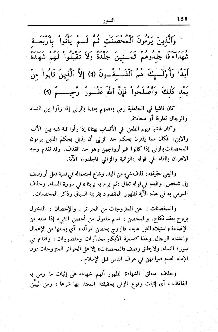 وَالَّذِينَ يَرْمُونَ الْمُحْصَناتِ ثُمَّ لَمْ يَأْتُوا بِأَرْبَعَةِ شُهَداءَ فَاجْلِدُوهُمْ ثَمانِينَ جَلْدَةً وَلا تَقْبَلُوا لَهُمْ شَهادَةً أَبَداً وَأُولئِكَ هُمُ الْفاسِقُونَ (4) إِلاَّ الَّذِينَ تابُوا مِنْ بَعْدِ ذلِكَ وَأَصْلَحُوا فَإِنَّ اللَّهَ غَفُورٌ رَحِيمٌ (5)