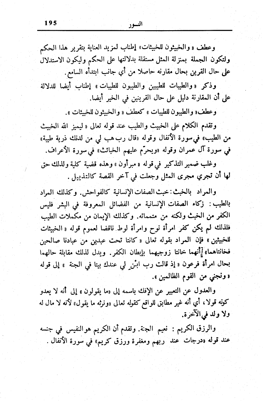 وَعَطْفُ وَالطَّيِّبُونَ لِلطَّيِّباتِ كَعَطْفِ وَالْخَبِيثُونَ لِلْخَبِيثاتِ.