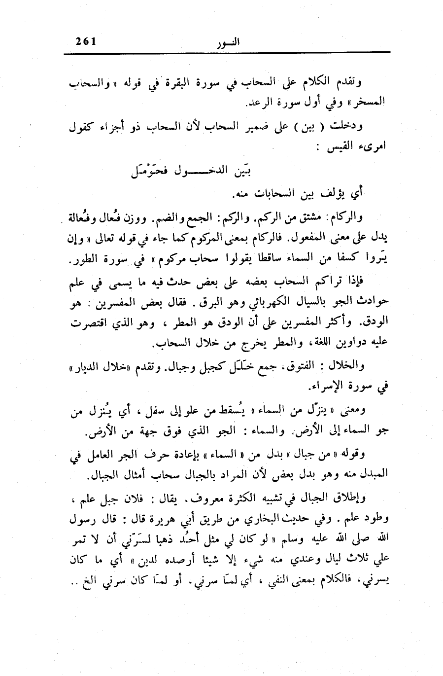 وَتَقَدَّمَ الْكَلَامُ عَلَى السَّحَابِ فِي سُورَةِ الْبَقَرَةِ [164] فِي قَوْلِهِ: وَالسَّحابِ الْمُسَخَّرِ وَفِي أَوَّلِ سُورَةِ الرَّعْدِ [12] .