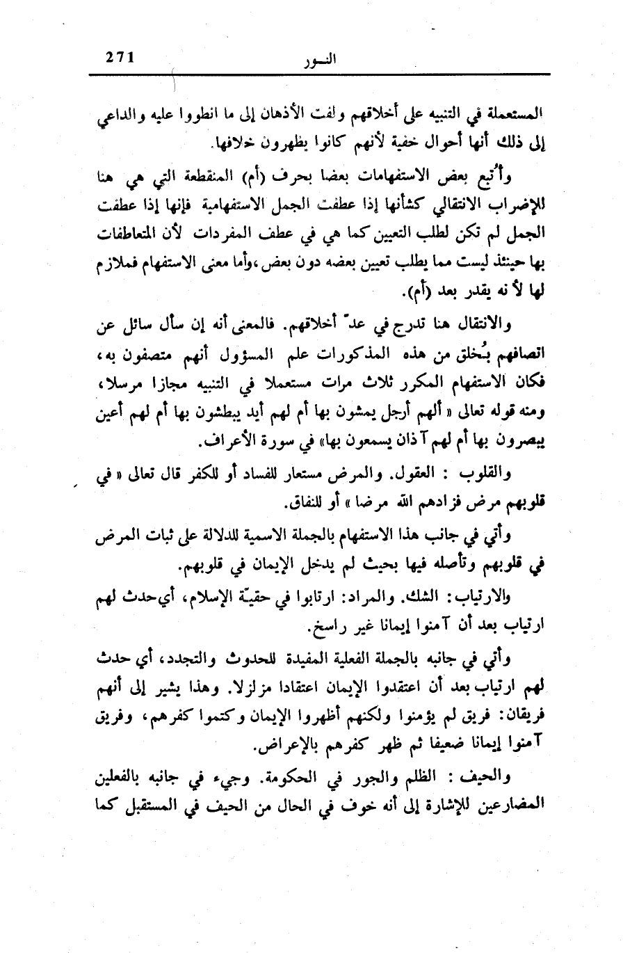 وَالِانْتِقَالُ هُنَا تَدَرُّجٌ فِي عَدِّ أَخْلَاقِهِمْ. فَالْمَعْنى أَنه إِن سَأَلَ سَائِلٌ عَنِ اتِّصَافِهِمْ بِخُلُقٍ مِنْ هَذِهِ الْمَذْكُورَاتِ عَلِمَ الْمَسْئُولُ أَنَّهُمْ مُتَّصِفُونَ بِهِ، فَكَانَ الِاسْتِفْهَامُ الْمُكَرَّرُ ثَلَاثَ مَرَّاتٍ مُسْتَعْمَلًا فِي التَّنْبِيهِ مَجَازًا مُرْسَلًا، وَمِنْهُ قَوْلُهُ تَعَالَى: أَلَهُمْ أَرْجُلٌ يَمْشُونَ بِها أَمْ لَهُمْ أَيْدٍ يَبْطِشُونَ بِها أَمْ لَهُمْ أَعْيُنٌ يُبْصِرُونَ بِها أَمْ لَهُمْ آذانٌ يَسْمَعُونَ بِها فِي سُورَةِ الْأَعْرَافِ [195] .