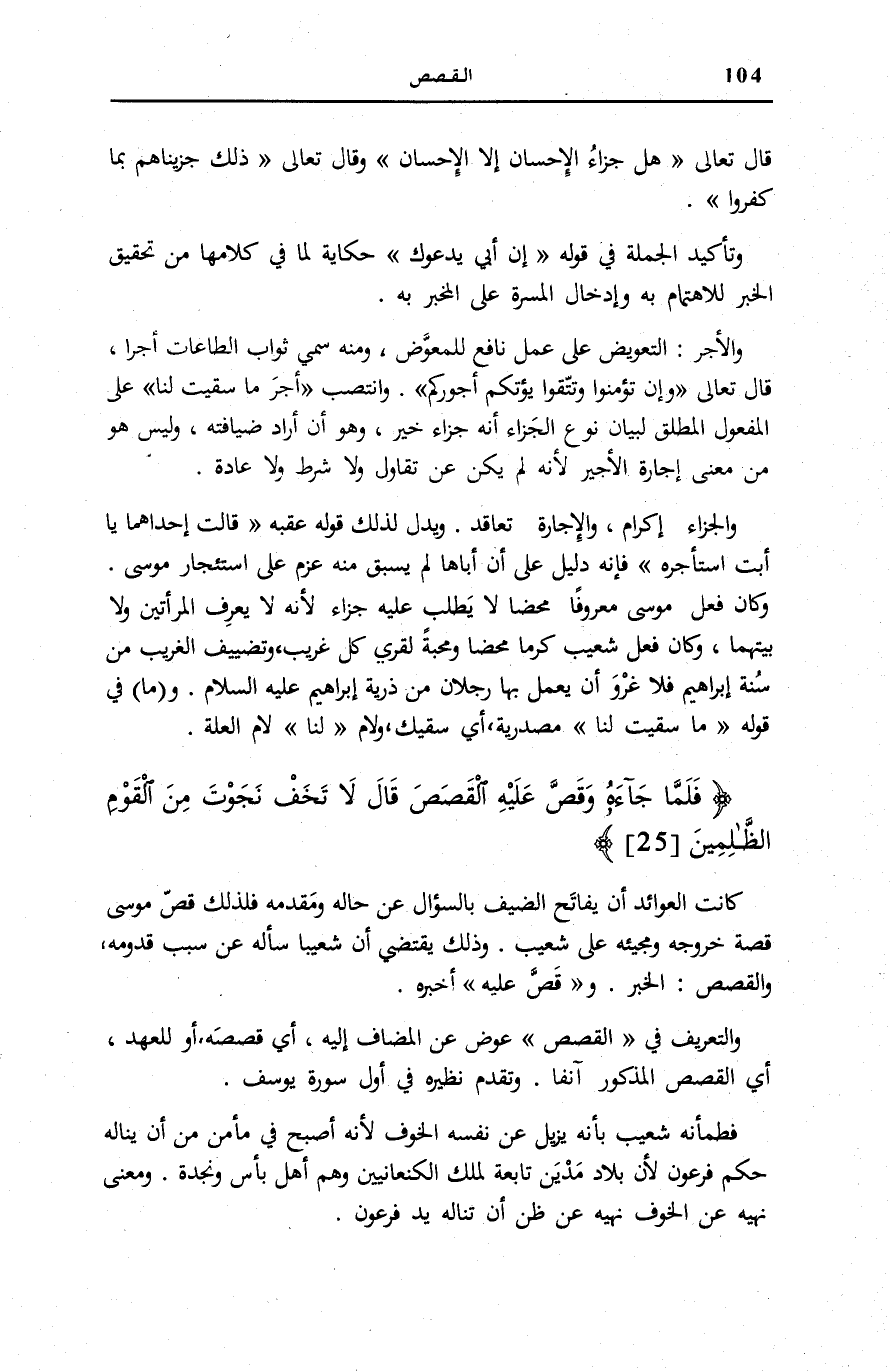 وَالْجَزَاءُ: إِكْرَامٌ، وَالْإِجَارَةُ: تَعَاقُدٌ. وَيَدُلُّ لِذَلِكَ قَوْلُهُ عَقِبَهُ قالَتْ إِحْداهُما يَا أَبَتِ اسْتَأْجِرْهُ [الْقَصَص: 26] فَإِنَّهُ دَلِيلٌ عَلَى أَنَّ أَبَاهَا لَمْ يَسْبِقْ مِنْهُ عَزْمٌ عَلَى اسْتِئْجَارِ مُوسَى.