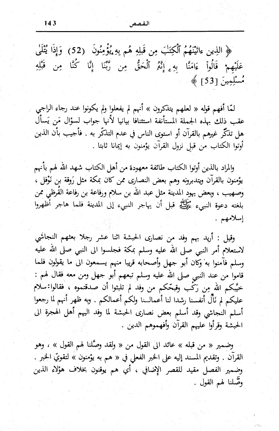 الَّذِينَ آتَيْناهُمُ الْكِتابَ مِنْ قَبْلِهِ هُمْ بِهِ يُؤْمِنُونَ (52) وَإِذا يُتْلى عَلَيْهِمْ قالُوا آمَنَّا بِهِ إِنَّهُ الْحَقُّ مِنْ رَبِّنا إِنَّا كُنَّا مِنْ قَبْلِهِ مُسْلِمِينَ (53)