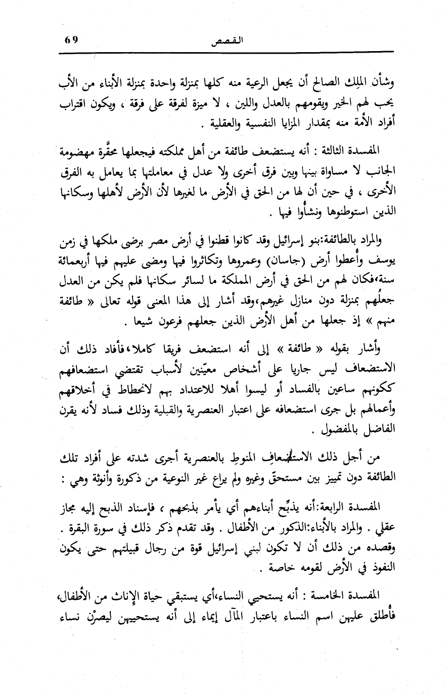 الْمَفْسَدَةُ الثَّالِثَةُ: أَنَّهُ يَسْتَضْعِفُ طَائِفَةً مِنْ أَهْلِ مَمْلَكَتِهِ فَيَجْعَلُهَا مُحَقَّرَةً مَهْضُومَةَ الْجَانِبِ لَا مُسَاوَاةَ بَيْنِهَا وَبَيْنَ فِرَقٍ أُخْرَى وَلَا عَدْلَ فِي مُعَامَلَتِهَا بِمَا يُعَامِلُ بِهِ الْفِرَقَ الْأُخْرَى، فِي حِينِ أَنَّ لَهَا مِنَ الْحَقِّ فِي الْأَرْضِ مَا لِغَيْرِهَا لِأَنَّ الْأَرْضَ لِأَهْلِهَا وَسُكَّانِهَا الَّذين استوطنوها ونشأوا فِيهَا.
