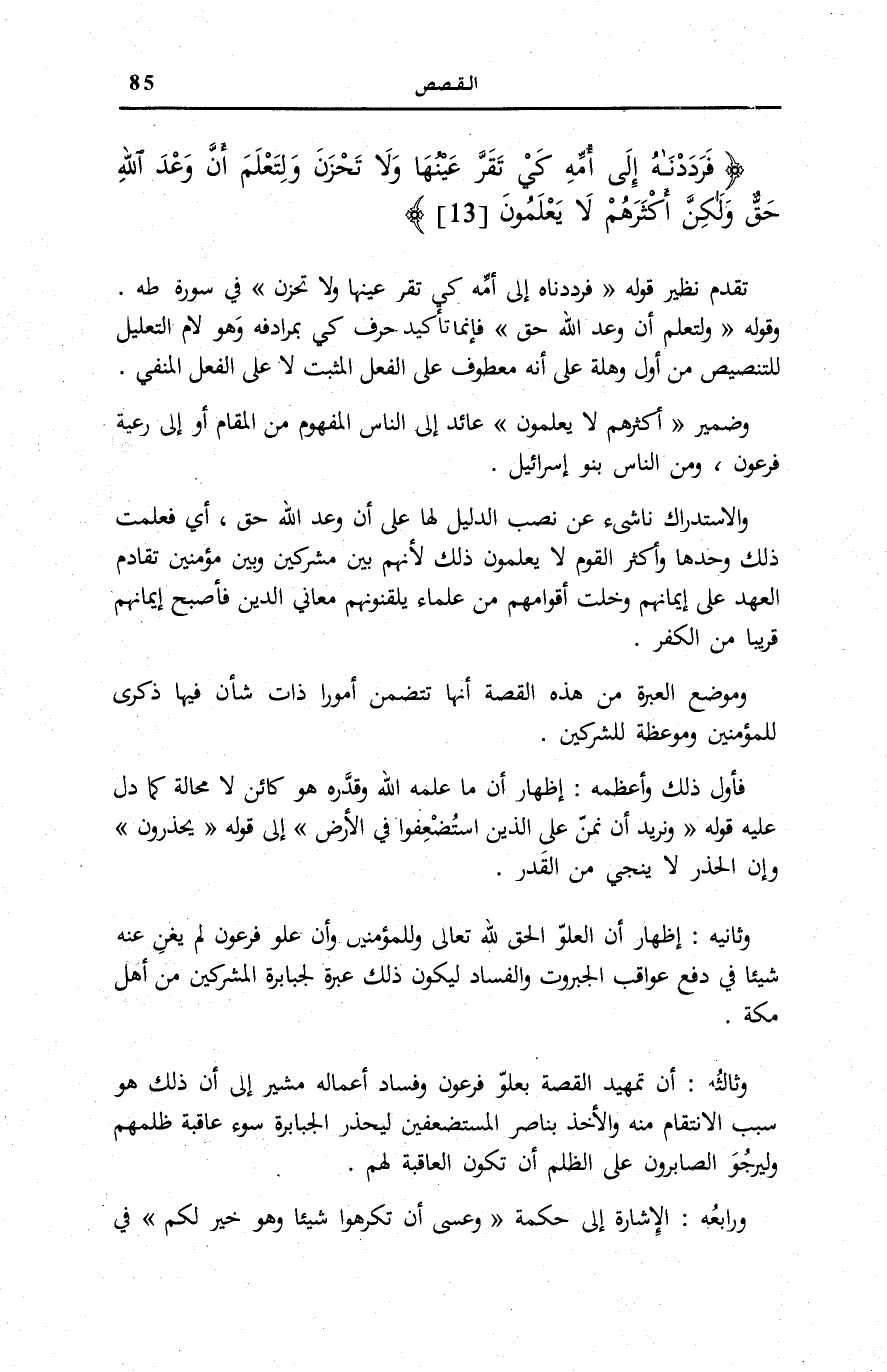 [سُورَة الْقَصَص (28) : آيَة 13]