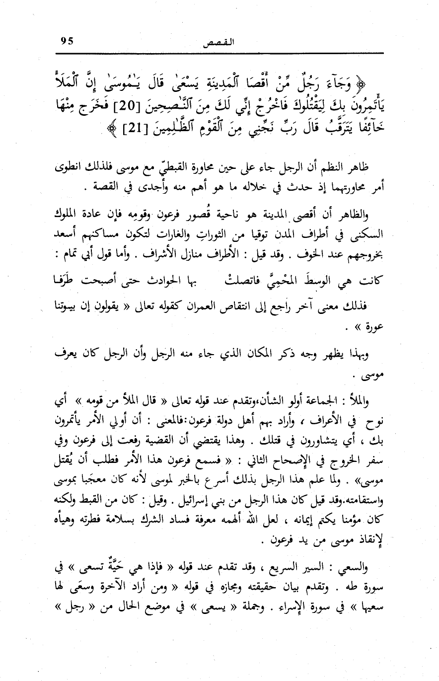 [سُورَة الْقَصَص (28) : الْآيَات 20 إِلَى 21]