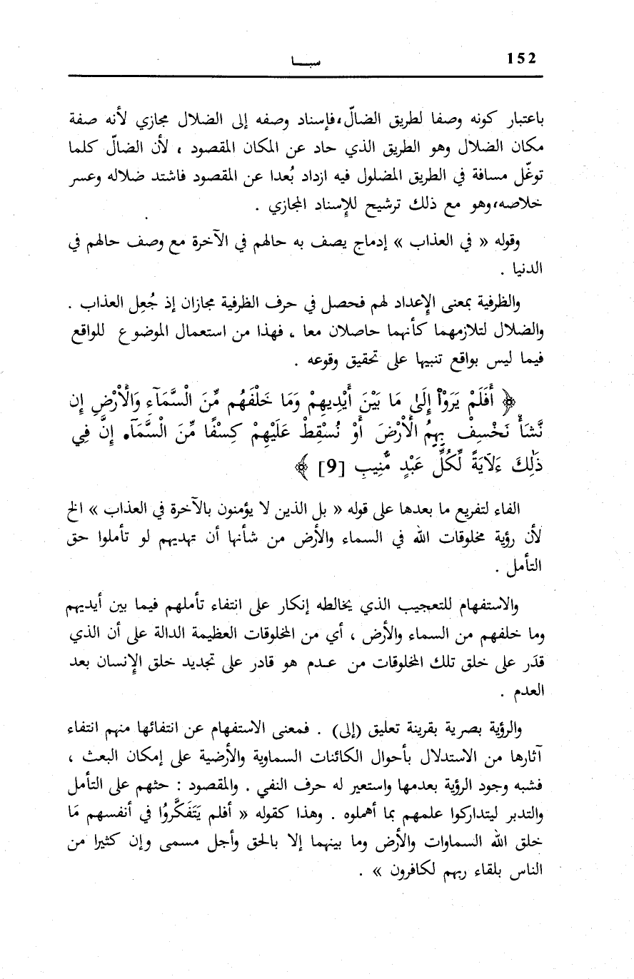 أَفَلَمْ يَرَوْا إِلى مَا بَيْنَ أَيْدِيهِمْ وَما خَلْفَهُمْ مِنَ السَّماءِ وَالْأَرْضِ إِنْ نَشَأْ نَخْسِفْ بِهِمُ الْأَرْضَ أَوْ نُسْقِطْ عَلَيْهِمْ كِسَفاً مِنَ السَّماءِ إِنَّ فِي ذلِكَ لَآيَةً لِكُلِّ عَبْدٍ مُنِيبٍ (9)