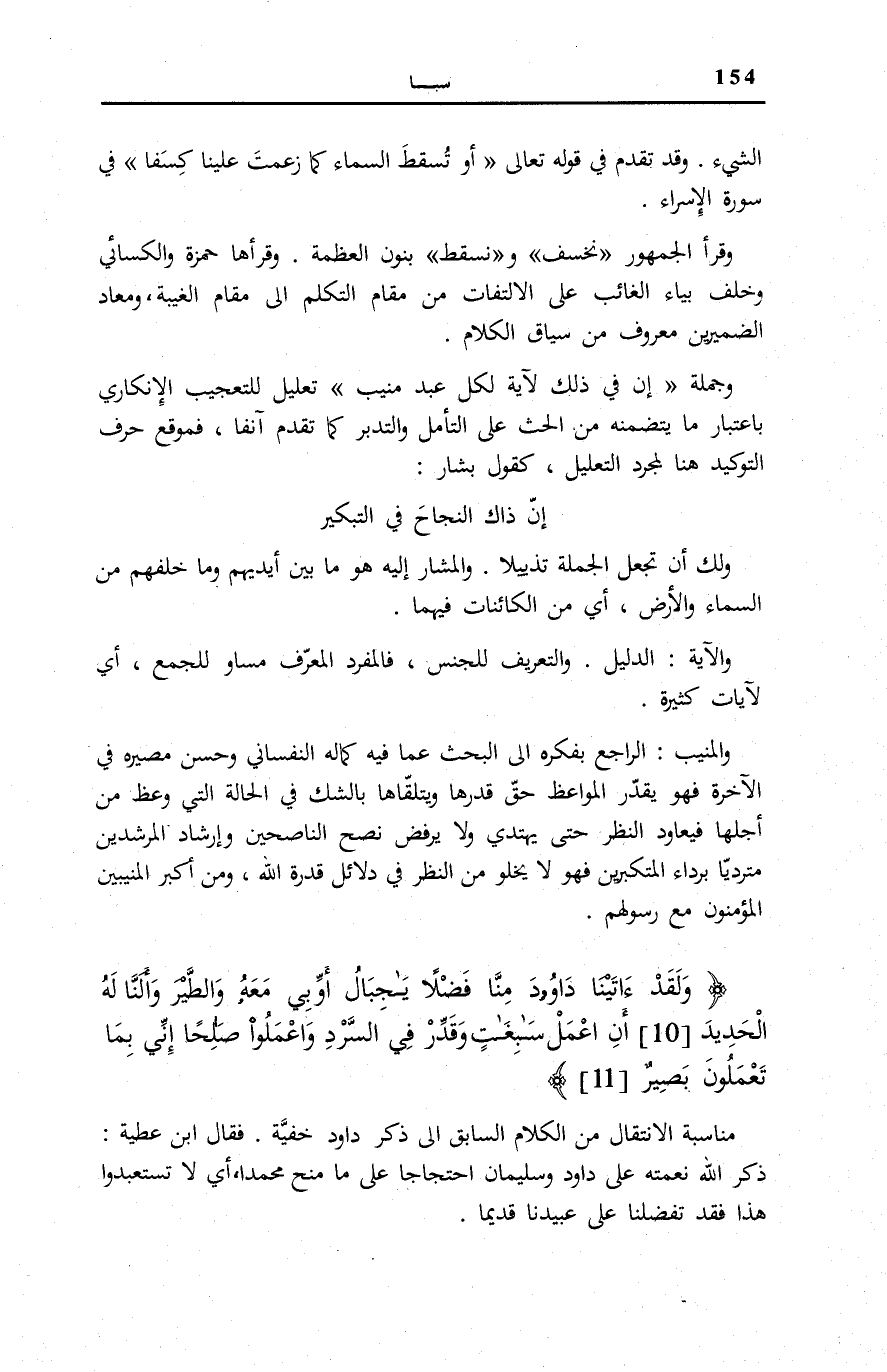 وَلَقَدْ آتَيْنا داوُدَ مِنَّا فَضْلاً يَا جِبالُ أَوِّبِي مَعَهُ وَالطَّيْرَ وَأَلَنَّا لَهُ الْحَدِيدَ (10) أَنِ اعْمَلْ سابِغاتٍ وَقَدِّرْ فِي السَّرْدِ وَاعْمَلُوا صالِحاً إِنِّي بِما تَعْمَلُونَ بَصِيرٌ (11)