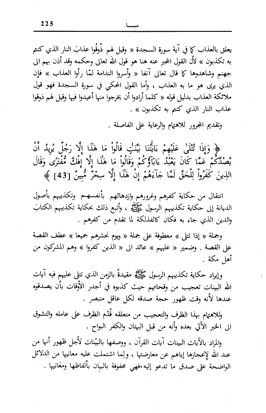 وَإِذا تُتْلى عَلَيْهِمْ آياتُنا بَيِّناتٍ قالُوا مَا هَذَا إِلاَّ رَجُلٌ يُرِيدُ أَنْ يَصُدَّكُمْ عَمَّا كانَ يَعْبُدُ آباؤُكُمْ وَقالُوا مَا هَذَا إِلاَّ إِفْكٌ مُفْتَرىً وَقالَ الَّذِينَ كَفَرُوا لِلْحَقِّ لَمَّا جاءَهُمْ إِنْ هَذَا إِلاَّ سِحْرٌ مُبِينٌ (43)