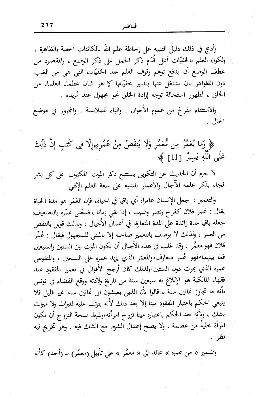 وَما يُعَمَّرُ مِنْ مُعَمَّرٍ وَلا يُنْقَصُ مِنْ عُمُرِهِ إِلَّا فِي كِتابٍ إِنَّ ذلِكَ عَلَى اللَّهِ يَسِيرٌ.