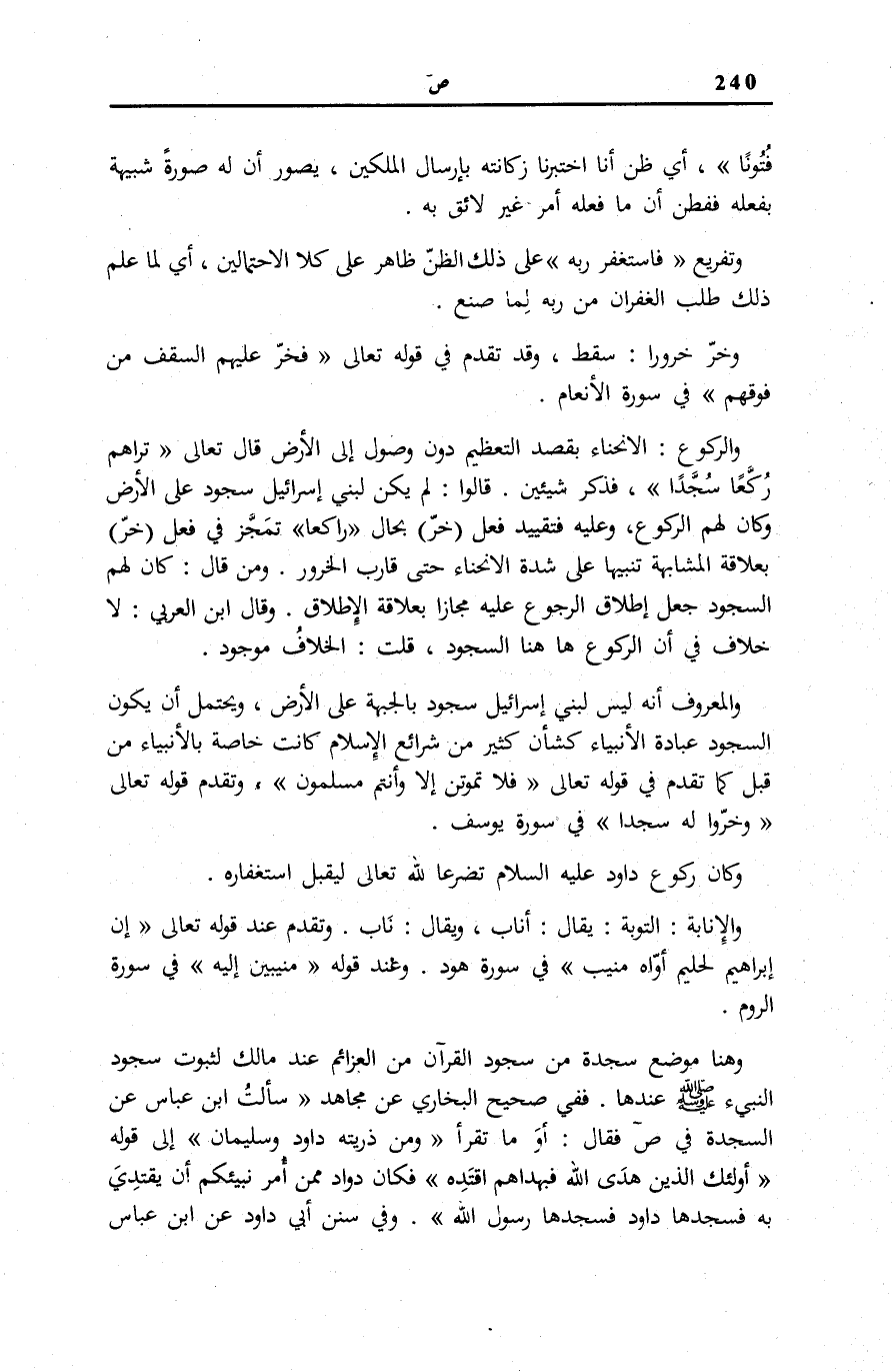 وَخَرُّوا لَهُ سُجَّداً فِي سُورَةِ يُوسُفَ [100] . وَكَانَ رُكُوعُ دَاوُدَ عَلَيْهِ السَّلَامُ تَضَرُّعًا لِلَّهِ تَعَالَى لِيَقْبَلَ اسْتِغْفَارَهُ.