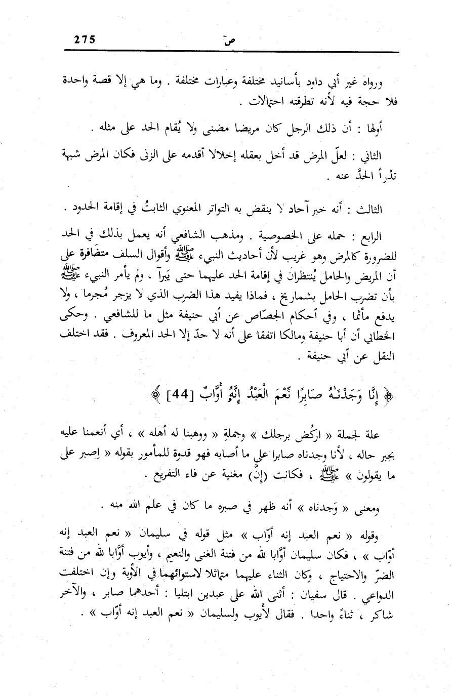 وَقَوْلُهُ: نِعْمَ الْعَبْدُ إِنَّهُ أَوَّابٌ مِثْلَ قَوْلِهِ فِي سُلَيْمَانَ نِعْمَ الْعَبْدُ إِنَّهُ أَوَّابٌ [ص: