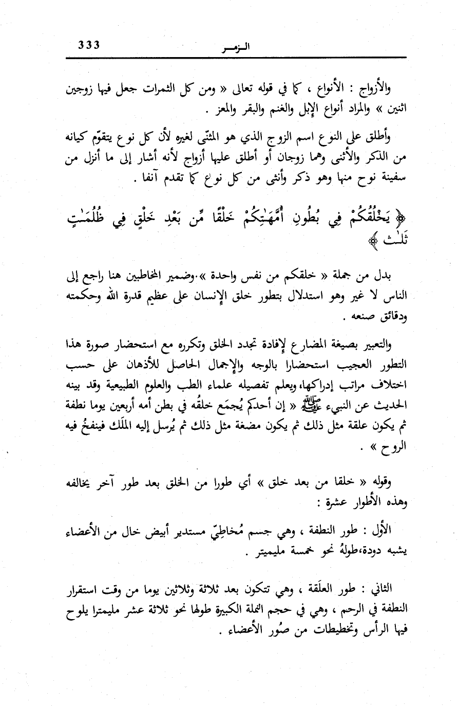 يَخْلُقُكُمْ فِي بُطُونِ أُمَّهاتِكُمْ خَلْقاً مِنْ بَعْدِ خَلْقٍ فِي ظُلُماتٍ ثَلاثٍ.